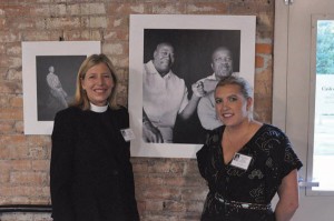 Episcopal deacon Dorothy Anderson Budd '80 and her daughter Peyton Budd '12 stand by a portrait of one of the former Texas prisoners they profiled in the book they co-wrote: "Tested: How Twelve Wrongly Imprisoned Men Held Onto Hope." Photo courtesy Peyton Budd '12.