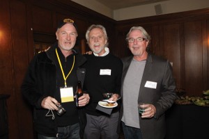 Pete Vogt ’82 (left) and CC professors Dan Tynan and Barry Sarchett enjoy catching up at the faculty meeting.