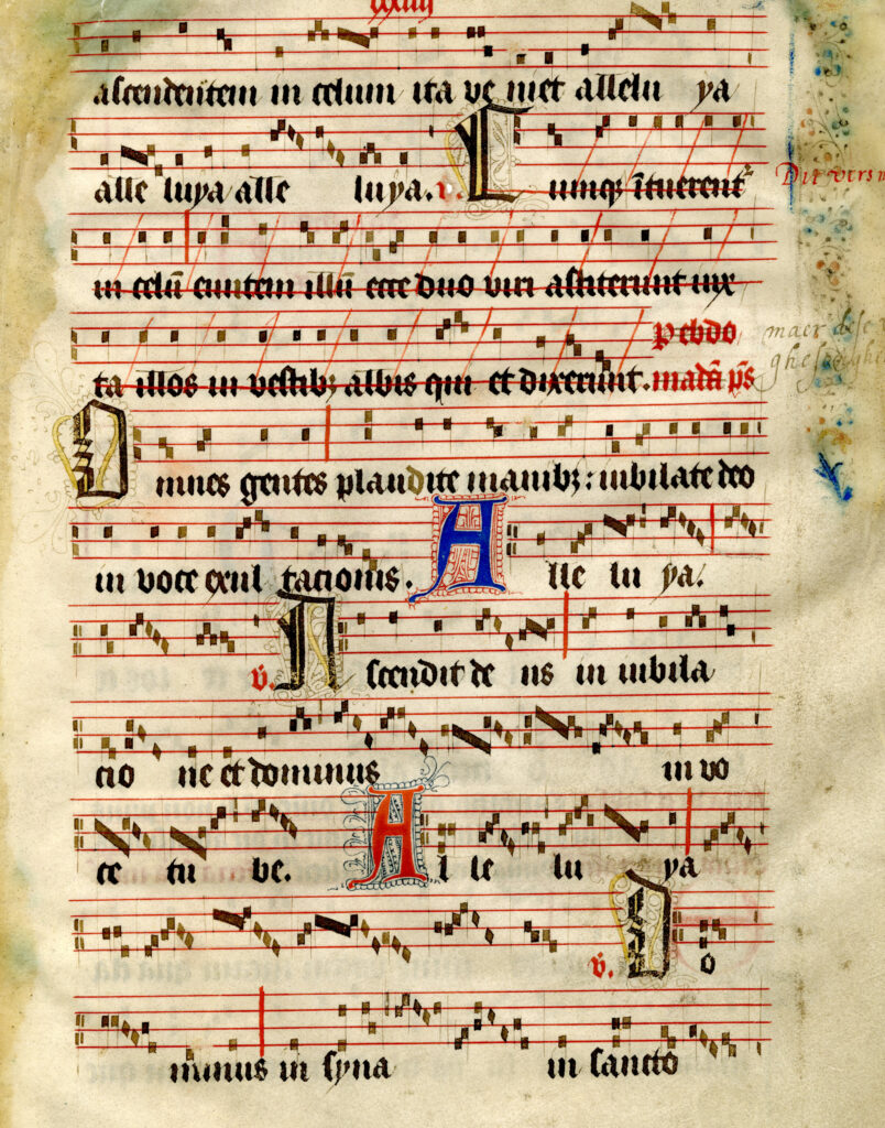 And then … THEY SANG IT! The words are “Omnes gentes plaudite manibus” (the fifth line from the top). Note that the staff has only four lines, rather than the now-standard five.