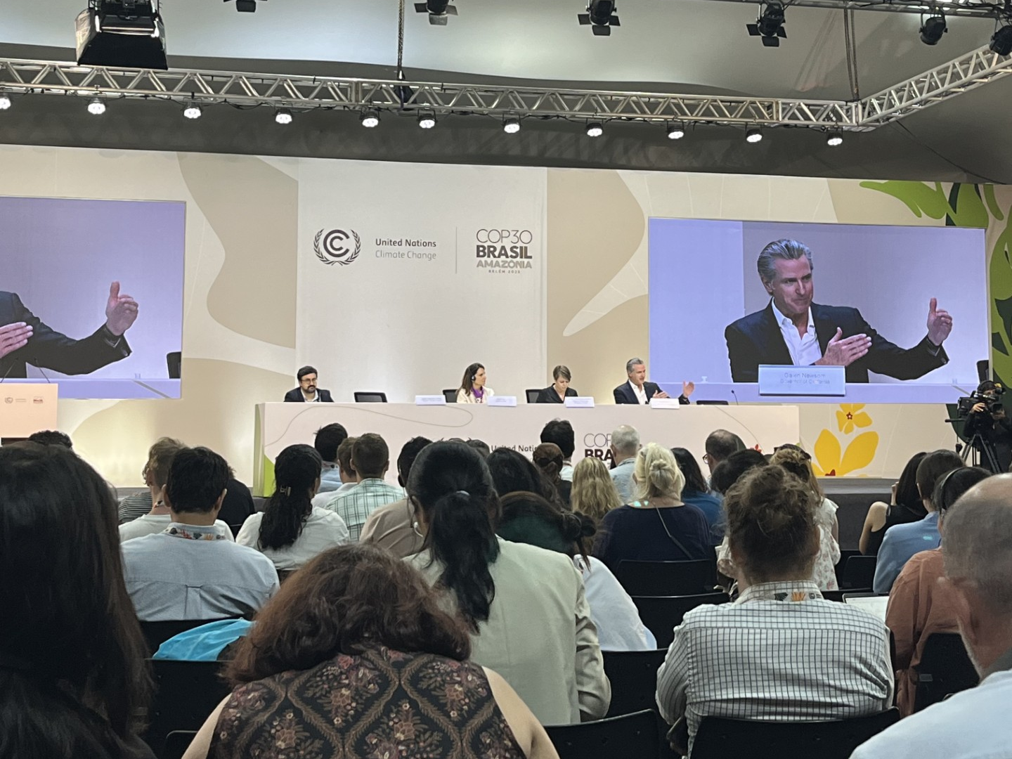 Josh Becker was part of a side event called “Setting the Stage for California Climate Action.” where he essentially spoke on behalf of the state and their progress in meeting the Paris Agreement 1.5 degree goal. He said that he wanted to offer a counter-narrative to the U.S. federal government in the low-carbon economic transition, and also that he came to COP30 to learn. He reported to the audience that the state is trying to promote renewable energy by proving cost reductions, and supporting programs like Cap and Trade to help transition their economy away from fossil fuels. With that said, Senator Becker also pointed out that 50% of Amazonian drilled oil goes to California as a way of emphasizing the impact a single state can have. I only made it into the end of Gavin Newsom’s panel with other subnational leaders like Malomö’s mayor Katrin Jemmeh, but I stuck around for questions he addressed after the panel. Newsom was also there to learn, but most importantly to send a clear message: California is all in. He spoke proudly that California government officials will continue to make strides in climate action and do what they can to become carbon neutral by 2035. He emphasized his despise for the Trump administration, and is concentrating on the power of his state’s government.