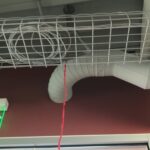 At some unknown library, during some sort of party for perhaps some sort of holiday, some unknown staffers figured out that they could run a streamer through the electrical outlet in the floor of one floor to the ceiling of the floor below.