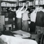 The Gallaudet University Library Deaf Collections & Archives shared these photos on Facebook November 29, 2018, saying: “Throwback Thursday: The Library Prank. On a January morning in 1940, students and faculty discovered that pranksters had entered the library in College Hall (now the President’s Office) during the night and turned all the books around so their spines faced the wall. The stunt must have required multiple people, since there were too many books for one person to do alone. However, despite rumors over the years, no one ever came forward and admitted they were the ones behind this prank — and since it was almost 80 years ago, the original pranksters have probably taken the secret with them. The first photo shows the library as it was initially discovered, with all the books reversed and several students and faculty milling around. The second and third photos show students who were enlisted to clean up the mess and put the books back in proper order.”