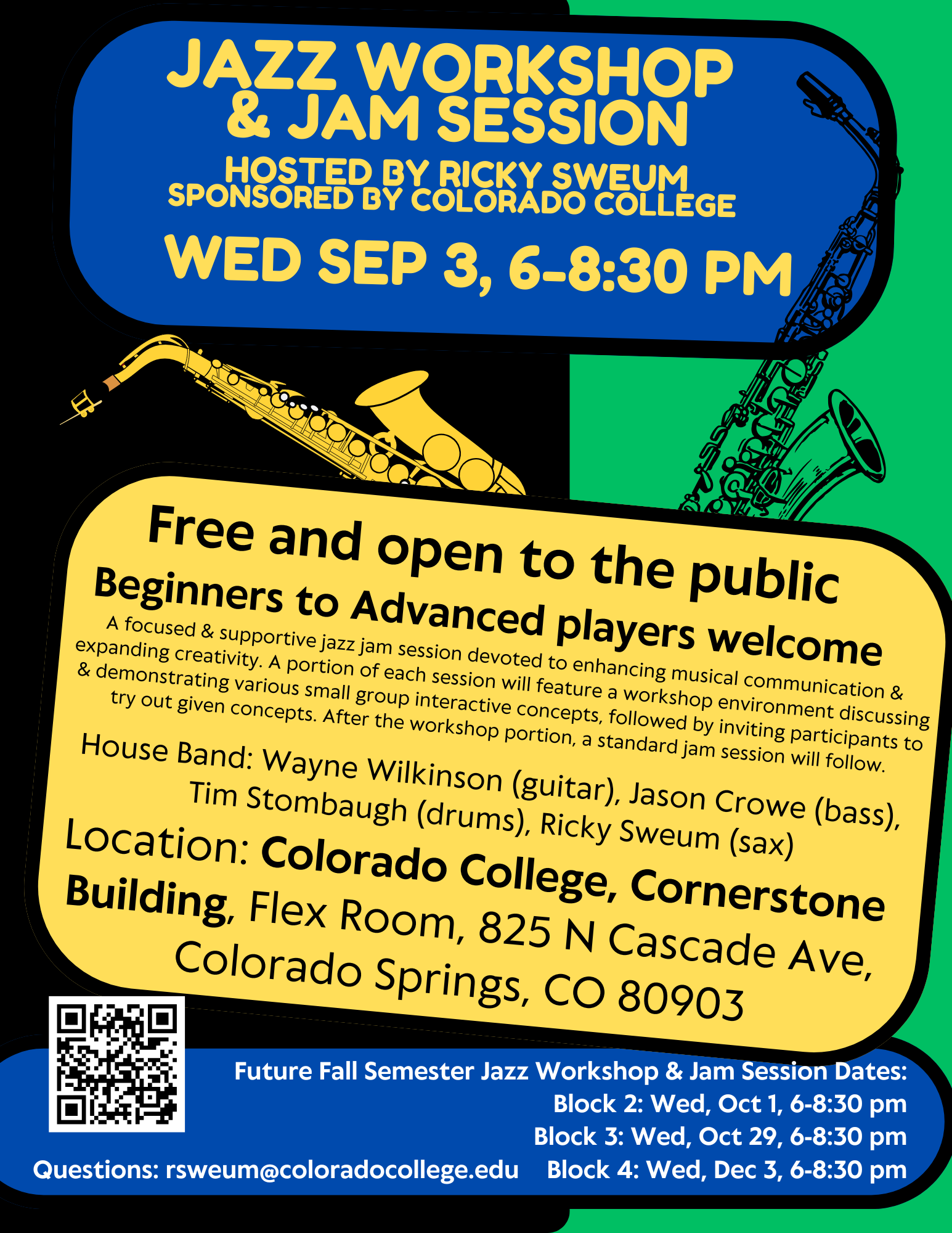 Friday, September 5, 2025 from 1:15 p.m. to 1:45 p.m. Shove Main Office //www.coloradocollege.edu/offices/chaplainsoffice/today@cc/Climb%20the%20Bell%20Tower.png“> Space will be limited to the first 12 students who arrive. Add to calendar: Apple/Outlook | Google