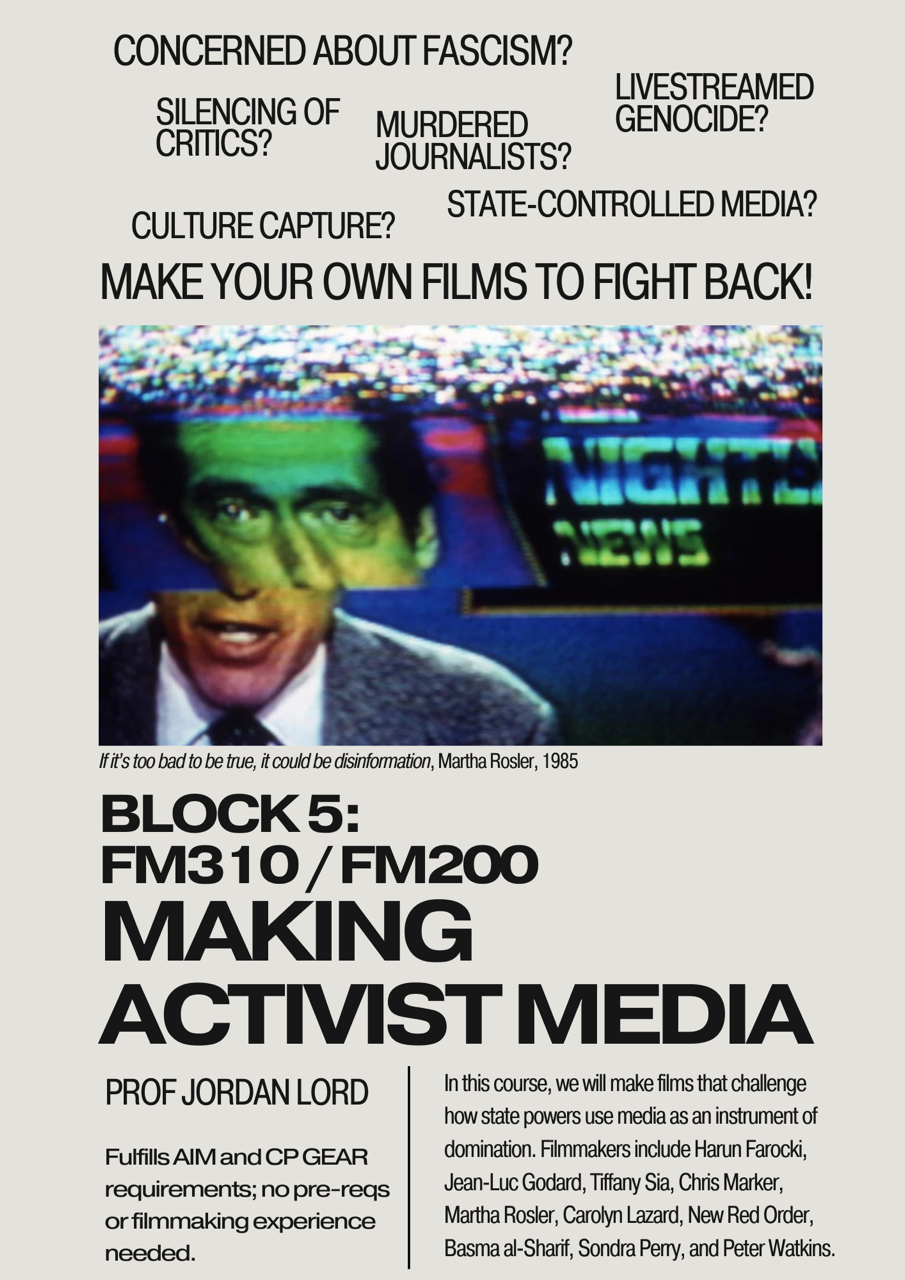Spots are available in Prof. Jordan Lord’s “Making Activist Media”! Open to First Year students and no…