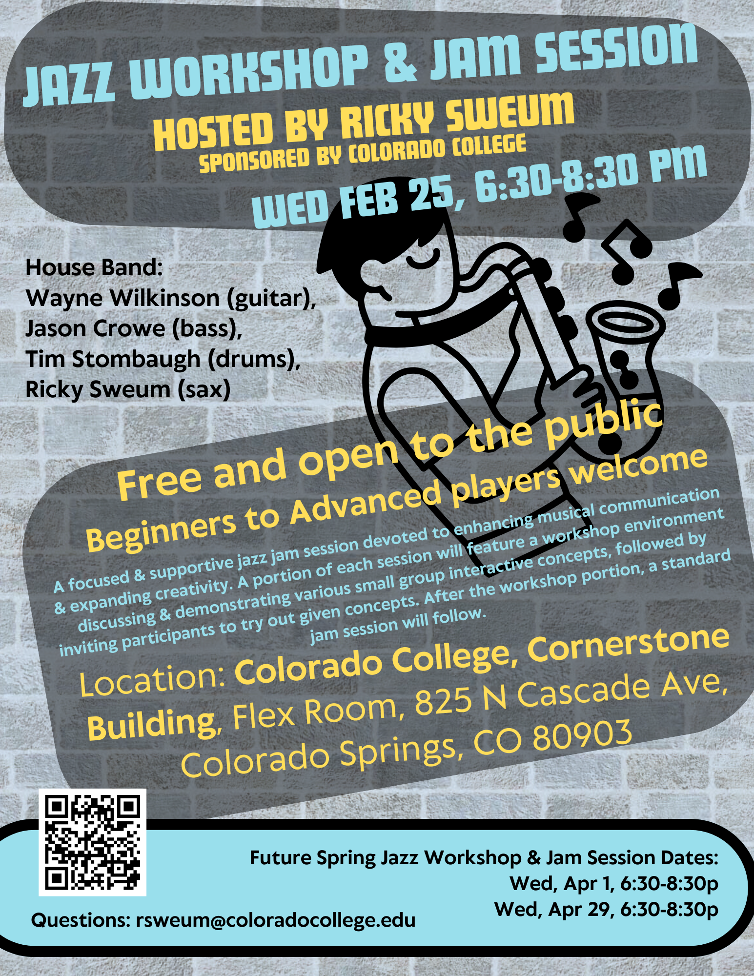 You’re invited! Join CC Tiger Jazz Director Ricky Sweum and the House Band this Wednesday, February 25 in the CAC Flex Room.